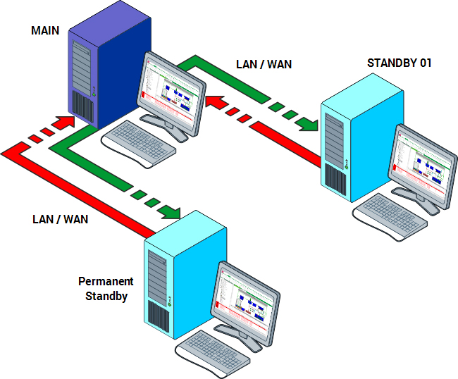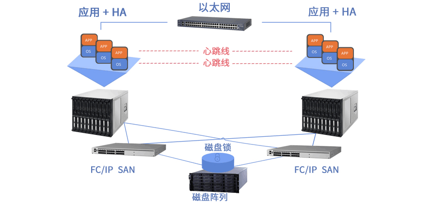 而standby服務器處于監(jiān)控準備狀態(tài),服務器數據包括數據庫數據,同時寫入兩臺服務器或共享數據的磁盤陣列存儲系統(tǒng),