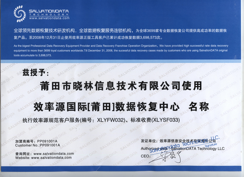 莆田市曉林信息技術(shù)有限公司使用效率源國際(莆田)數(shù)據(jù)恢復(fù)中心名稱”時,這種神秘感頓時又讓人心生諸多的敬畏
