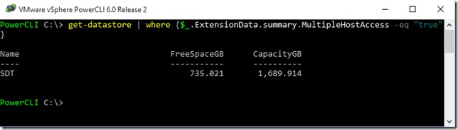 獲取數(shù)據(jù)存儲 | 其中 {$_.ExtensionData.summary.MultipleHostAccess -eq “true”}