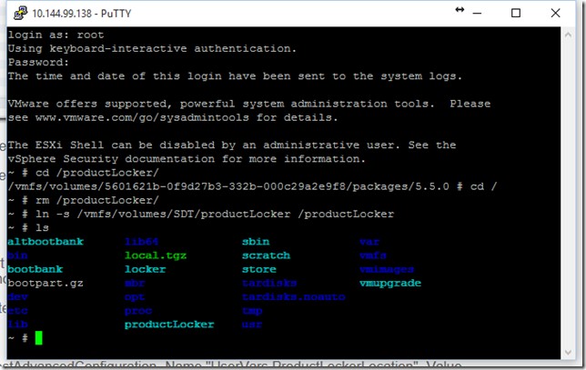 ln -s /vmfs/volumes/SDT/productLocker /productLocker