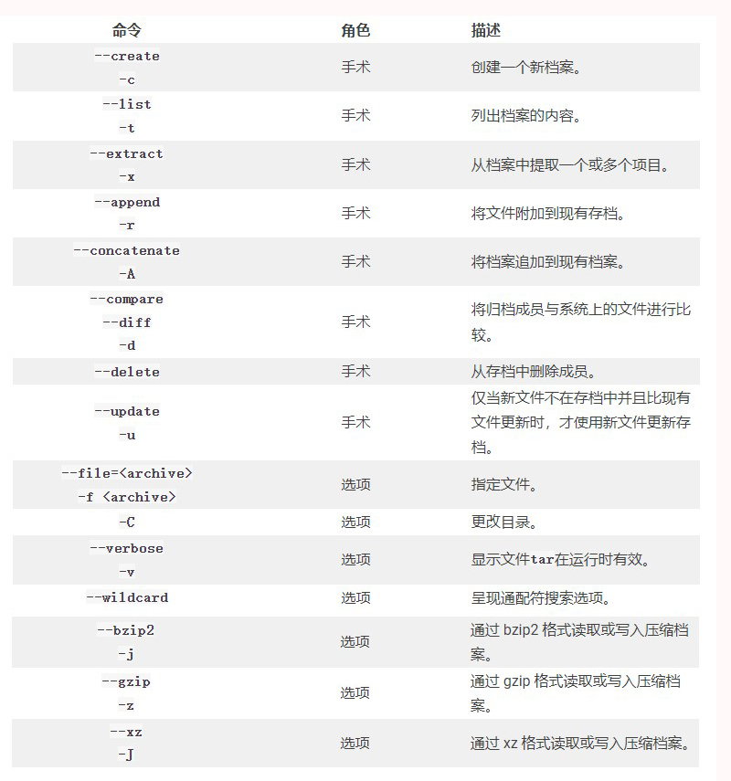 - 操作模式指示對文件執(zhí)行的操作(創(chuàng)建、提取等)。該命令只允許并且只需要一項操作。