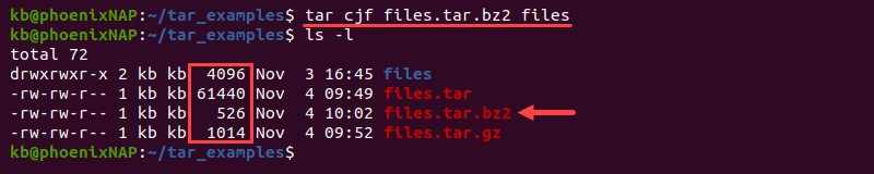 要創(chuàng)建tar.bz2文件,請?zhí)砑?code>-j標記: