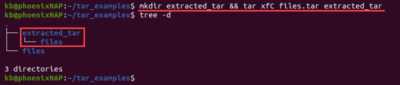 mkdir extracted_tar && tar xfC files.tar extracted_tar