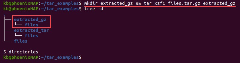 mkdir extracted_gz && tar xzfC files.tar.gz extracted_gz