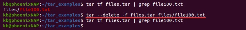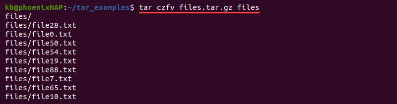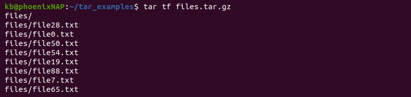 詳細選項在運行 tar 命令后顯示附加信息。添加-v或--verbose到任何操作以查看結果。