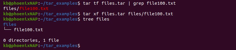 該命令僅使用指示的文件創(chuàng)建目錄文件。按照相同的步驟通過添加適當?shù)臉撕瀼膲嚎s檔案中提取單個文件。例如,使用-z從 tar.gz 文件中提取的選項。