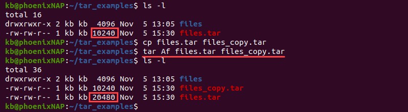 例如,將壓縮的files.tar.gz文件附加到files.tar存檔:
