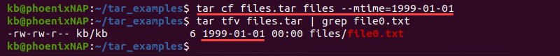 Tar 提供了各種選項來修改文件的時間戳。--mtime通過添加選項并提供日期來在創(chuàng)建存檔時設置自定義日期: