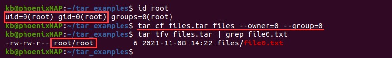 Tar 允許文件所有權配置。例如,要在創(chuàng)建存檔時設置文件所有者,請?zhí)砑?code>--owner和--group選項并